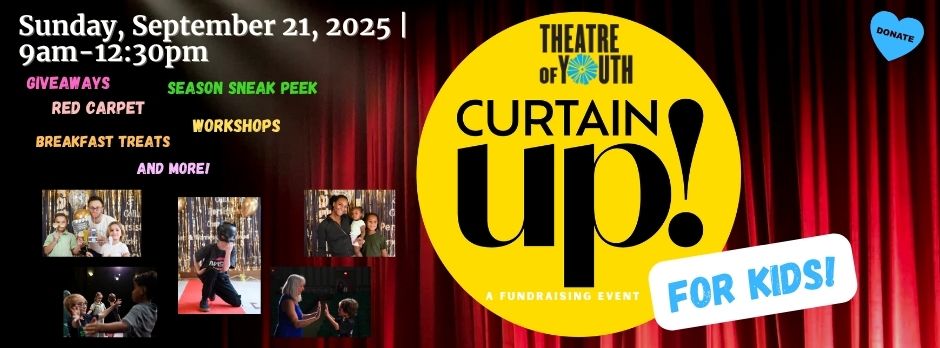Curtain Up for Kids at Theatre of Youth– September 21, 2025 from 9am to 12:30pm. Features breakfast treats, workshops, season sneak peek, giveaways. Donations range from FREE to $35. Learn more and register