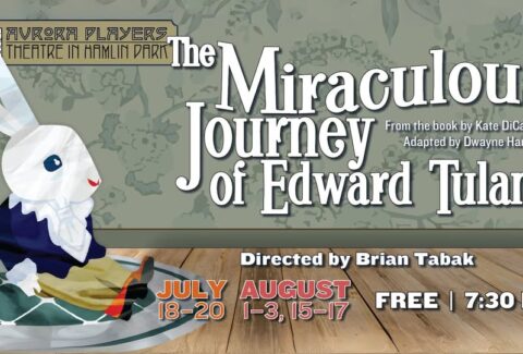 FREE- Aurora Players- Miraculous Journey of Edward Tulane– August 15 to 17, 2025 at 7:30pm. Great for kids