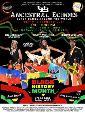 Ancestral Echoes is generously sponsored by Africana & American Studies, CAS Diversity, Equity, and Belonging, Comparative Literature, English, the Gender Institute, Global Gender & Sexuality Studies, History, the Humanities Institute, Immersion East Side, Linguistics, the Office of Inclusive Excellence, Romance Languages, and Theatre and Dance.