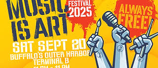 FREE- Music is Art at Buffalo Outer Harbor Terminal B– September 20, 2025 from 11am to 11pm. Features Dead Orchids, PA Line, Scott Celani, Rabbit Jaw, Miller and Other Sinners. Organ Fairchild, Speedy Parker Blues Band, Groove Train, Diyene and dozens more plus silent disco.