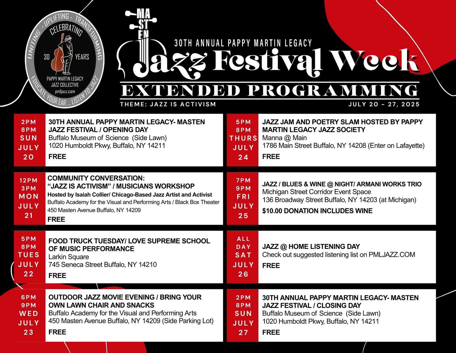 Pappy Martin Masten Jazz Festival on Humbolt Pkwy- July 27, 2025 from 2pm to 8pm- Extended Schedule