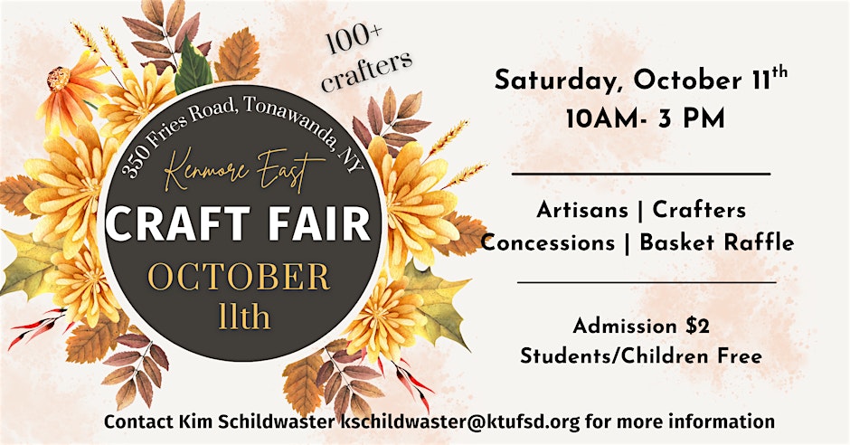 Kenmore East Craft Fair- October 11, 2025 from 10am to 3pm with over 120 crafters. Admission is $2 for adults, kids are free.  We will be there with our rocks and fossils and metaphysical crystals and jewelry.