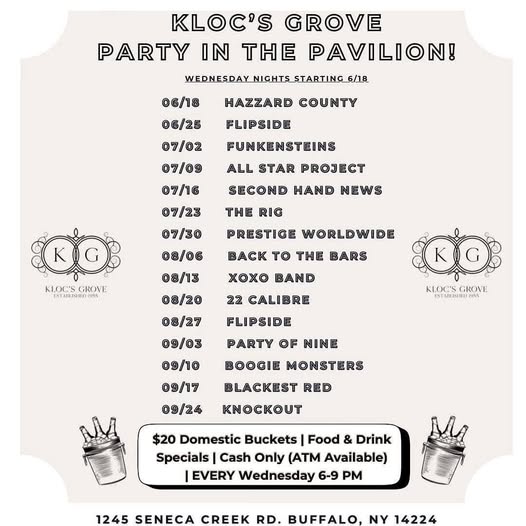 Music at Kloc’s Grove-Knockout- September 24, 2025 from 6 to 9pm at 1245 Seneca Creek Road, Buffalo.