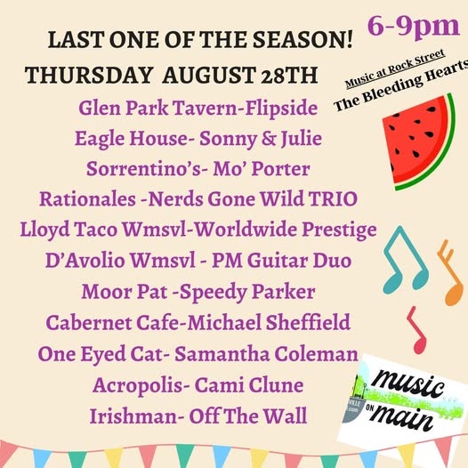 Music on Main in Williamsville-  August 28, 2025 on Thursdays from 6pm to 9pm.