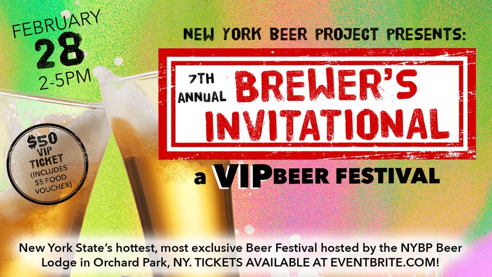 2026- New York Brewers Invitational – February 28, 2026 from 2pm to 5pm at 245 Windward Road, Orchard Park. Hosted by NY Beer Project, Rusty Nickel and Brazen Brewing. Tickets are $60.03.