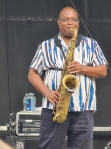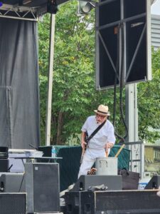 Sauce Boss with Traveling Gumbo Show– the Sauce Boss can play that guitar and is an excellent musician as was his band. Add the pot on gumbo on stage with audience members stirring and his interaction with the crowd and it was fun WITH great music. After the set, the audience got a bowl of gumbo–we had it and it was good! They sell the hot sauce.