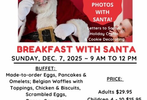 Breakfast with Santa at Byrncliff Resort- December 7, 2025 rom 9am to Noon. Buffet and Photos with Santa. Adults are $29.95, Kids 4 to 10 are $15.95 and 3 and under are free. Call 585-535-7300.