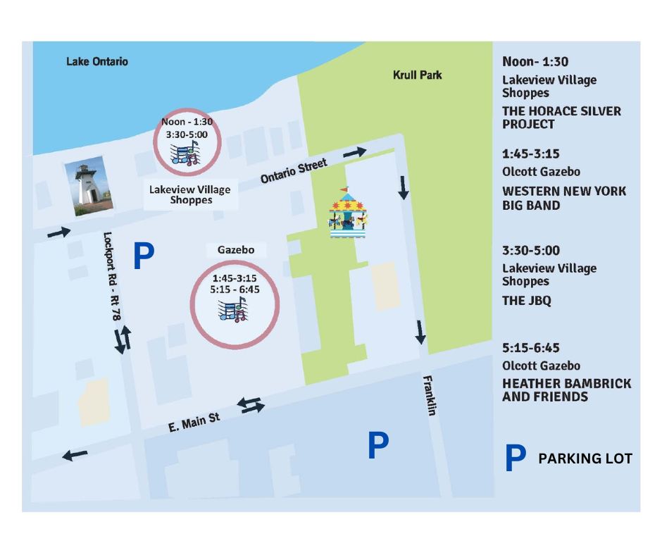 Olcott Beach Jazz Trail- August 31, 2025 from Noon to 7pm. Great fun as you stroll around and listen to great music.