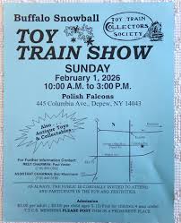 Buffalo Snowball Train Show at Polish Falcons- February 1, 2026 from 10am to 3pm at 445 Columbia Avenue, Depew. Admission is $5 and $2 for ages 2 to 12.