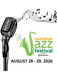 Lewiston Jazz Festival Line-up– August 28 and 29, 2026- FREE and great Fun- music, food and wine and beer and a great street festival.