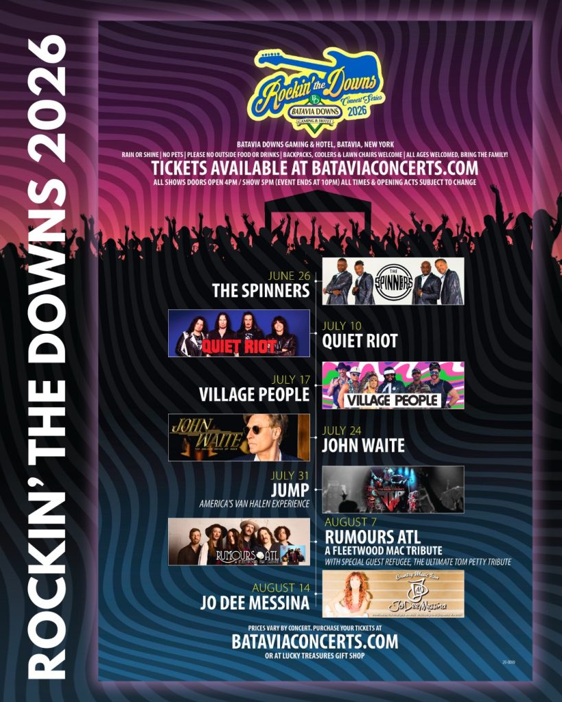Music at Batavia Downs- June 26 to August 14, 2026 at 8315 Park Road, Batavia, NY. Tickets are $18.67