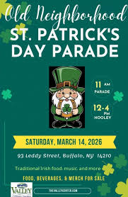 Old Neighborhood St. Patrick’s Day Parade- March 14, 2026 from 11am to 4pm at 93 Leddy Street, Buffalo. This is THE BEST St. Pat’s parade.
