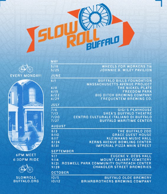 Slow Roll Buffalo Bicycle Schedule– May 18 to October 12, 2026 on Mondays at 6:30pm.