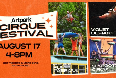 Artpark Cirque Festival– wtih Slyboots Circus, Flip Fabrique and Violet Defiant- August 17, 2025 from 4pm to 8pm. Tickets are $15 for adults and $10 for kids, family pack is $40-two adults, two kids.