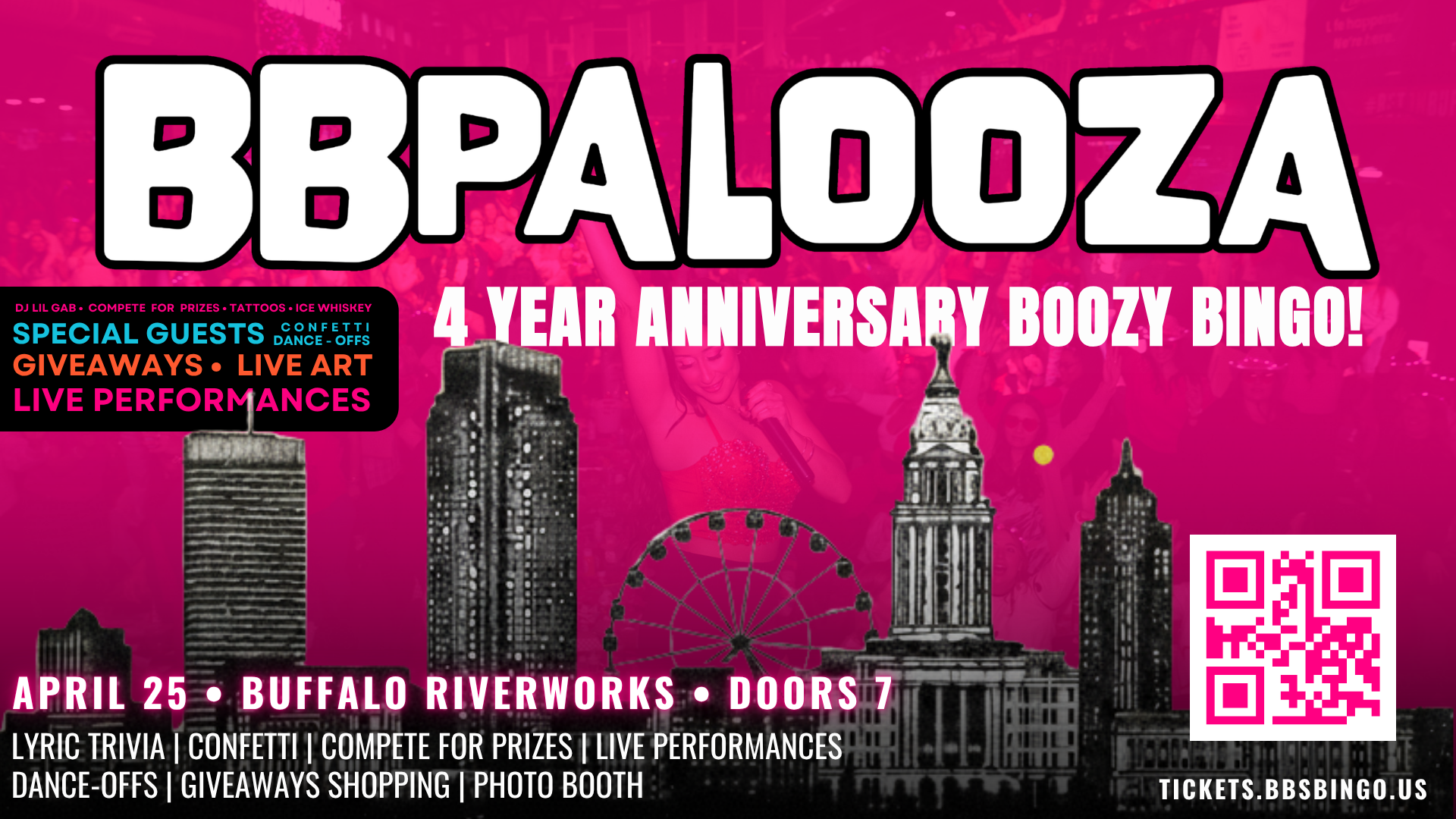 Boozy Buffalo at Riverworks– April 25, 2026 at 7pm, ball drop at 8:30pm. SOLD OUT