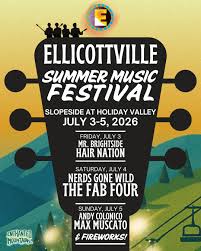Ellicottville Summer Music Festival– July 3 to 5, 2026 featuring Hair Nation, Fab Four,Nerds Gone Wild, Cami clune, Mr. Brightside and Max Muscato