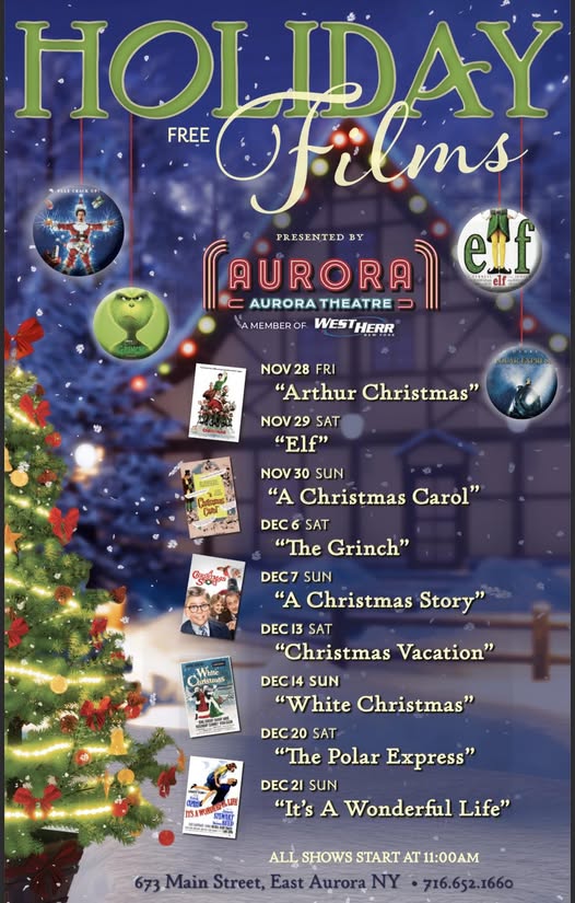 FREE Holiday Movies at East Aurora Theater- December 21, 2025 at 11am at 673 Main Street.