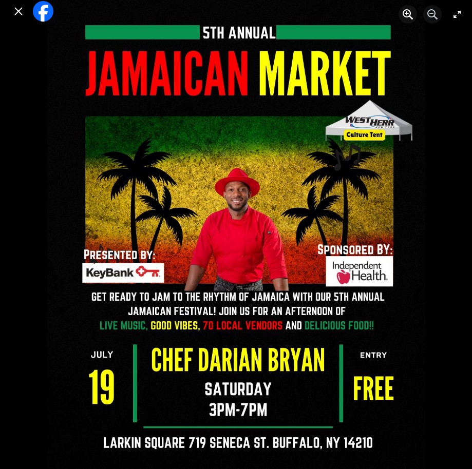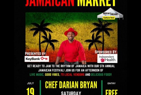 FREE-Jamaican Market at Larkin Square on July 19, 2025 from 3pm to 7pm featuring food, culture and music. 745 Seneca St.