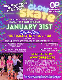 Glow Skate at Recreation Roller Rink – January 31, 2026 from 5pm to 7pm. $10 admission. Call 662-6450 to register. 4600 California Road, Orchard Park