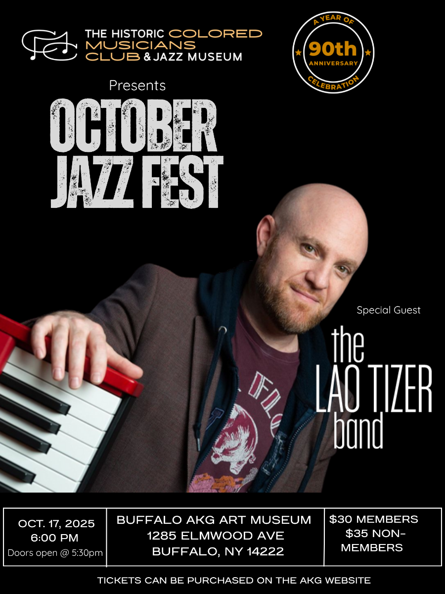 Jazz at Albright Knox Art Museum- Lao Tizer Band- October 17, 2025 at 6pm and tickets are $35, $30 for members.