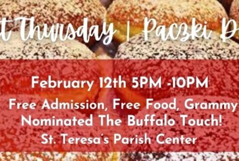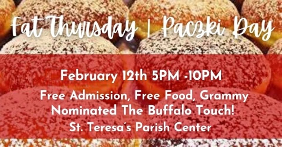 Paczki Day– FREE Admission and FREE Food- Buffalo Touch Music- St. Teresa’s- February 12, 2026 from 5pm to 10pm at 1974 Seneca Street, Buffalo.