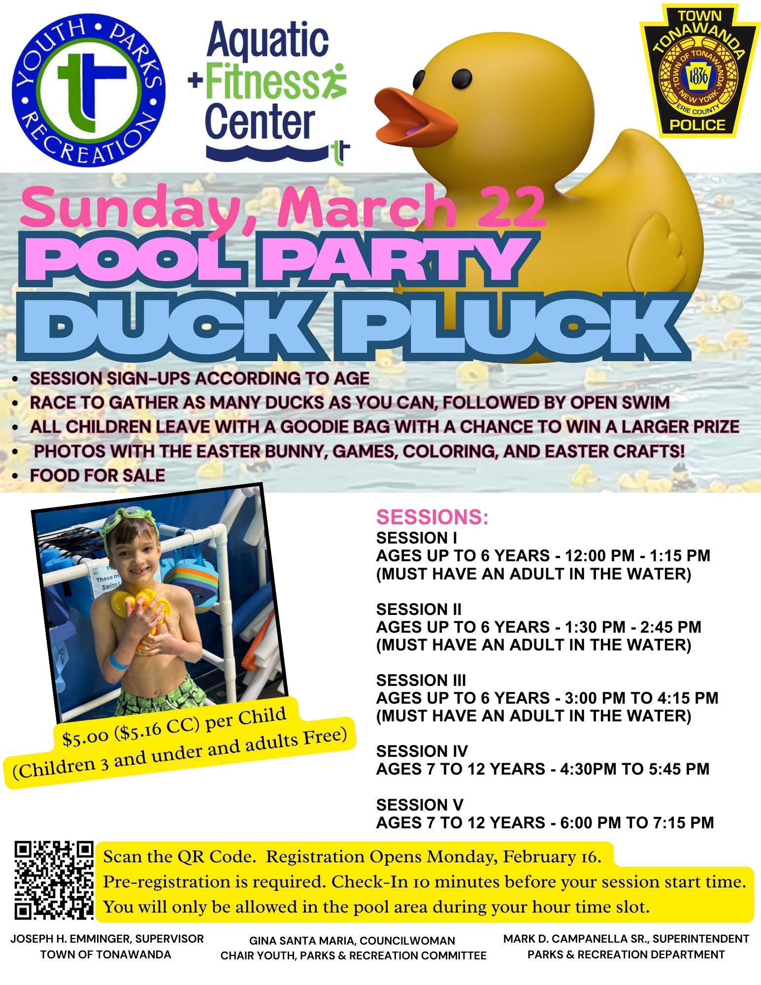 Pool Party Duck Pluck on March 22, 2026 from Noon to 6pm at the Aquatic and Fitness Center, 1 Pool Plaza, Buffalo. Cost is $5 and kids 2 and under and adults are free.