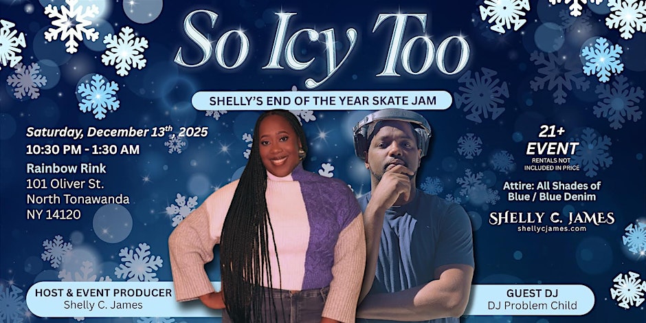 Shelly’s Skate Jam at Rainbow Rink– December 13, 2025 from 10:30pm to 1:30am at 101 Olliver Street. 21+. Tickets are $23.18.