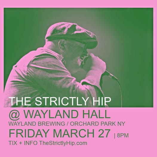 Strictly Hip at Wayland Brewing – March 27, 2026 at 8pm at 3740 N. Buffalo St., Orchard Park. Tickets are $10.