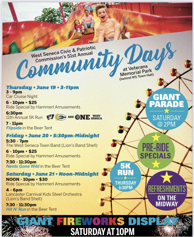 West Seneca Community Days- Hit N’ Run- June 21, 2025 at 7:30pm Veterans Memorial Park at 1250 Union Road.