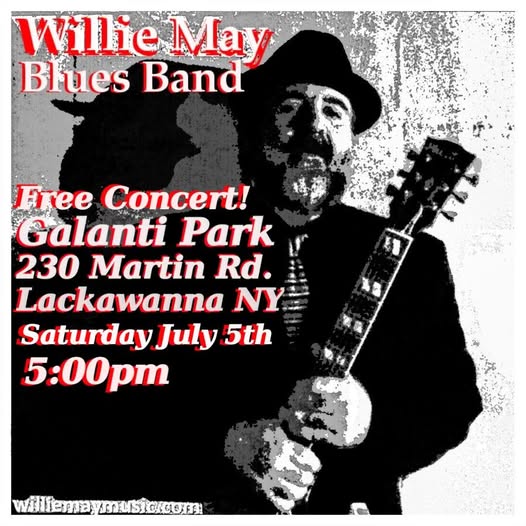 Willie May Blues Band at Galanti Park at 230 Martin Road near the senior center on July 5, 2025 at 5pm.