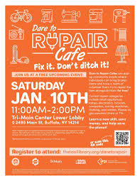 FREE- Repair Cafe at Tri-Main Bldg– January 10, 2026 from 11am to 2pm at 2495 Main Street at the Tri-Main Bldg., Buffalo. Register