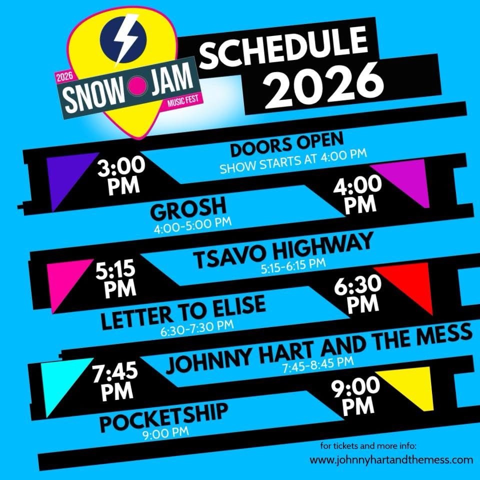 2026- Snow Jam at Buffalo Irish Center– Grosh-Johnny Hart, Elise-Tsavo- February 21, 2026 from 3pm to 10pm. Tickets are $17.85 and $7.18 for kids 5 to 13. 245 Abbott St.