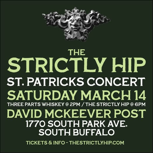 Strictly Hip St. Patrick’s Concert at McKeever Post- March 14, 2026 with Three Parts Whiskey at 2pm and Strictly Hip at 6pm at 1770 South Park Avenue, Buffalo, NY