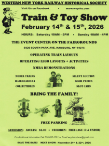 Toy and Train Show at Hamburg Fairgrounds- February 15, 2026 from 10am to 4pm. Admissionis $8 and kids 12 and under are free.